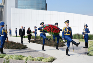 Azərbaycan Prezidenti İlham Əliyev və birinci xanım Mehriban Əliyeva Bakıda Zəfər abidəsini ziyarət edib və Zəfər muzeyinin açılışında iştirak ediblər.