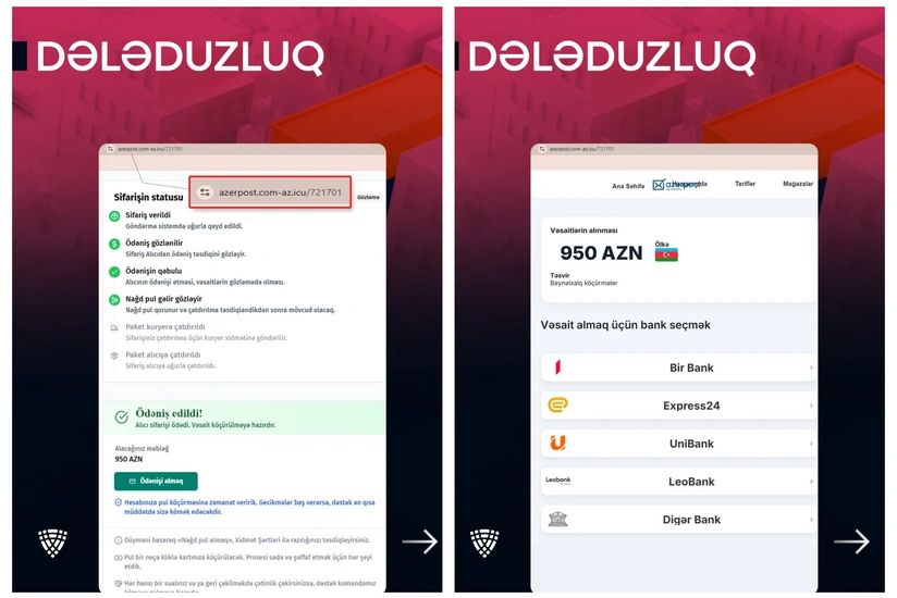 Rəqəmsal İnkişaf və Nəqliyyat Nazirliyinin nəzdində fəaliyyət göstərən Elektron Təhlükəsizlik Xidmətinin (ETX) müşahidələrinə əsasən, son günlər kiberdələduzlar “Azərpoçt” MMC-nin adı və loqosundan sui-istifadə edərək vətəndaşlara qarşı məqsədli fırıldaqçılıq kampaniyası həyata keçirirlər.