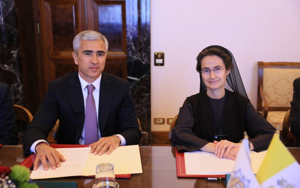 Yeniera.az AZƏRTAC-a istinadən xəbər verir ki, Vatikanda keçirilən görüşdə sənədi Azərbaycan Prezidentinin köməkçisi, Heydər Əliyev Fondunun icraçı direktoru Anar Ələkbərov və Vatikan şəhər-dövlətinin qubernatorluğunun prezidenti, rahibə Raffaella Petrini imzalayıblar.