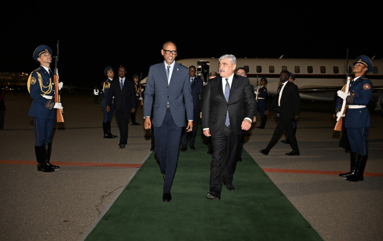 Ruanda Prezidentini Azərbaycanın Baş nazirinin müavini Samir Şərifov, xarici işlər nazirinin müavini Yalçın Rəfiyev və digər rəsmi şəxslər qarşıladılar.